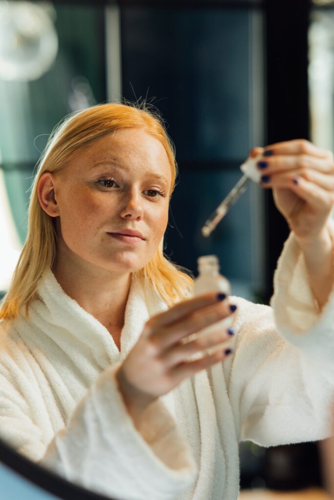 This process stimulates collagen, elastin and hyaluronic acid creation which affects your skin’s structural integrity and ability to retain moisture. It also encourages the growth of stronger and more elastic skin cells. As oestrogen levels increase, your skin thickens, decreasing the size of your pores, and promoting collagen production. When your skin cells turn over in this way, your complexion feels plumper, more hydrated, and wrinkle-free. You will notice that your skin looks radiant and at its best during this time of your cycle; you can think of this as your after-period glow.